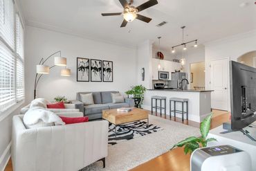 TOP FLOOR bright South Facing home, quiet one of a kind condo in an unmatched location in the complex > A new HVAC system, new hot water heater, refinished cabinets in the kitchen and bath plus the installation of a large walk-in shower add over $20,000 in upgrades > Easy one level living, the soaring 10 foot ceilings and expansive windows allow natural light to flood the rooms > Adjacent to the living room is a large relaxing patio > Modern kitchen has granite counters, stainless appliances including a gas stove/oven and refinished white cabinetry > Spacious owners suite features a large walk-in closet, upgraded bath with the addition of the large walk-in shower, an added storage nook, and linen closet > This unit has lowest monthly HOA in complex > Parking options are super-convenient to this home’s location > Amenities in the complex include: resort style pool with outdoor grilling area, club room with catering kitchen, modern fitness center, guest suite, concierge services and on-site management. Cobb County taxes are another plus in this Historic Vinings Village move-in ready home.